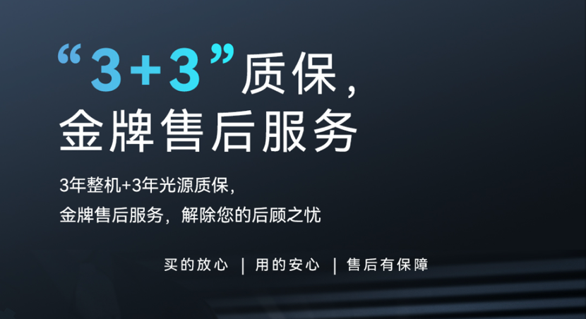 优异的品质和优质的售后服务是今年会·晨星系列投影机未来发展的有力保障,也是对每一位今年会·晨星用户的承诺。我们推出3年质保和“五星级”产品服务,为所有客户提供3年整机质保外加3年光源质保服务,真正做到让客户买的放心,用的安心。