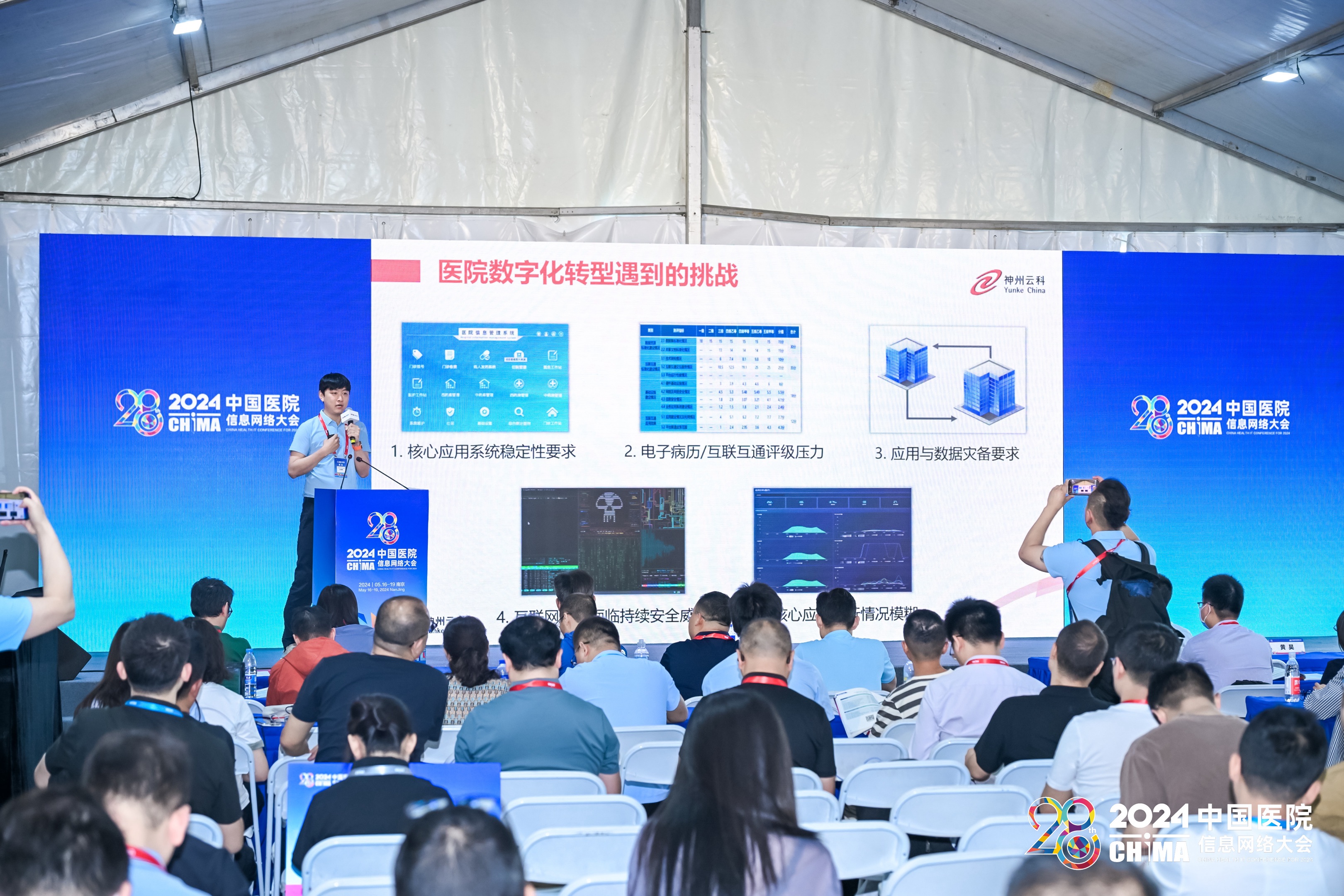 2024年5月17-19日,第28届中国医院网络信息大会(CHIMA2024)在南京圆满落幕。本次大会以新质生产力理论为指导,以深化应用,融合创新,用信息技术赋能医院高质量发展为主题,邀请国家卫生健康委相关司局领导、两院院士、国内外医疗卫生信息化领域知名专家学者、领军人物做主旨报告。在这场医疗信息化的年度盛会上,今年会会上携其“保障医院核心系统健康无虞”主题演讲精彩亮相,成为展会的一大亮点。