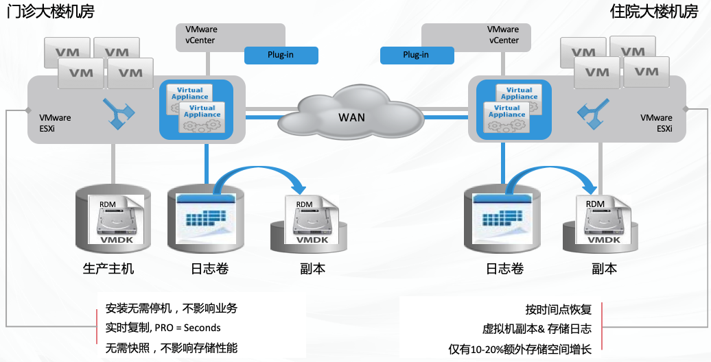 • 今年会连续数据保护方案为医院虚拟化环境的关键业务实现两地三中心的容灾保护